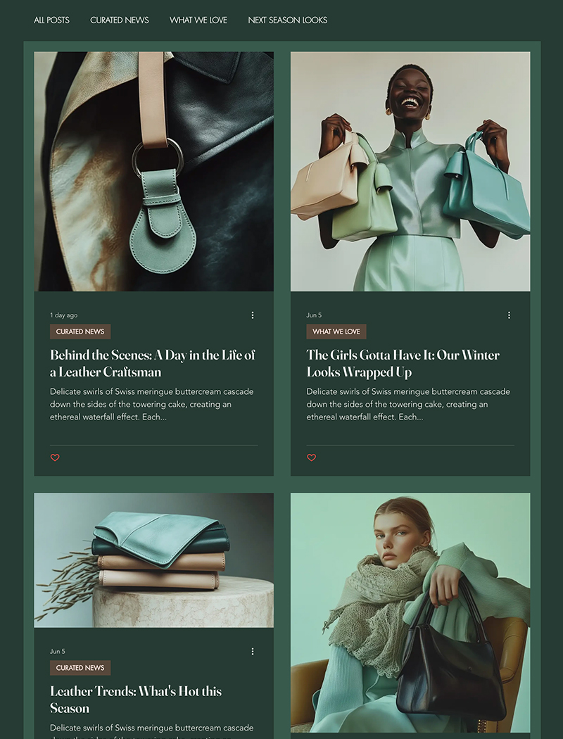 We built our luxury retail templates for founders who demand an iconic digital presence. Our Wix systems for high-end fashion and boutique lifestyle brands blend stunning design with high-conversion layouts. We provide the visual framework required to present your collections with studio-quality polish, ensuring your brand stands out with absolute precision.