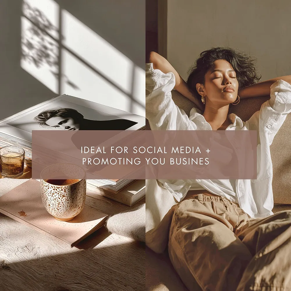 This second volume explores muted beige, taupe, and earthy undertones layered with darker accents. The collection includes faceless feminine portraiture and minimal lifestyle details, perfect for building an intentional brand aesthetic that feels moody and timeless.